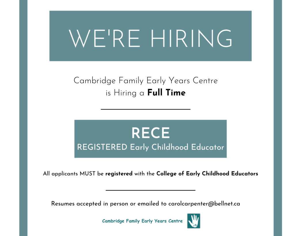 We also share unexpected closures on our own social media accounts – Facebook @cfeyc, or Instagram @cfeyc. Bad weather closures will also be posted to our social media as well as the various EarlyONWR social accounts. If schools are open, our centre is open but if schools are closed we are closed.